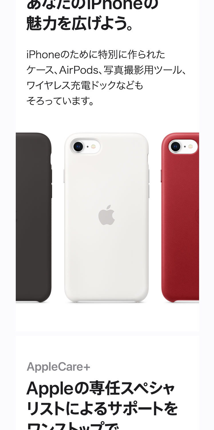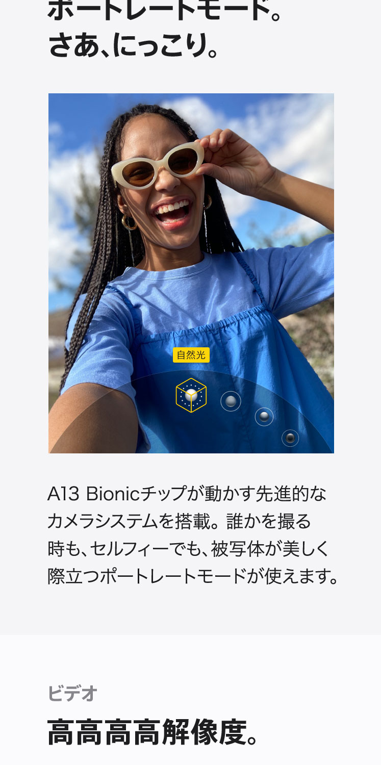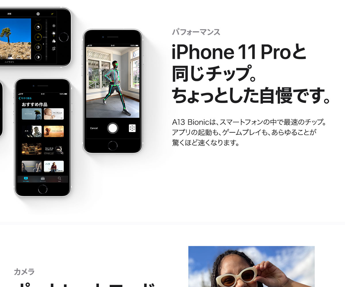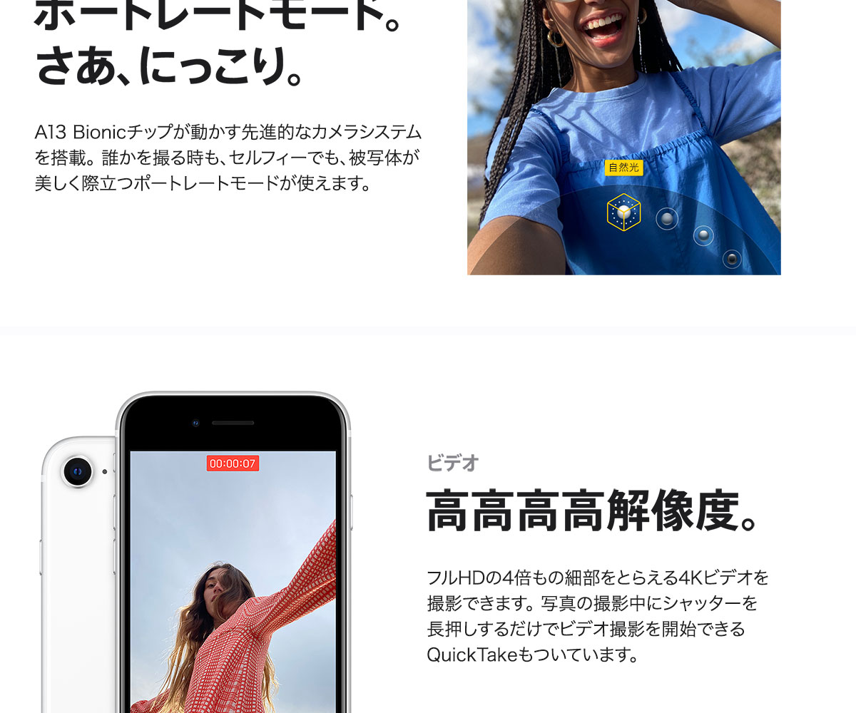 - iPhone SE(第2世代)の試作ハードウェアとソフトウェア、Apple USB-C電源アダプタ(18WモデルA1720と30WモデルA1882)アクセサリを使用し、2020年2月にAppleが実施したテスト結果によります。 高速充電のテストは、バッテリーを完全に消費したiPhoneハードウェアを使って実施しました。 充電時間は環境条件によって変わり、実際の結果は異なる場合があります。